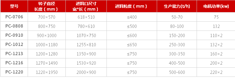 除了錘式破碎機轉子這個技術參數之外,錘式破碎機電機功率也是錘式破碎機重要的一個區(qū)分,作為大產量的破碎機設備,配備的電機功率然也是比較大的,但是以我們公司同等時處理量的破碎機設備為例,以時產50噸的錘式破碎機為例,需要配備的電機功率是75KW,其他廠家需要配備的電機功率是比較大的,那么整體的電能消耗是比較大的,在電能消耗上的技術優(yōu)勢是顯而易見的,下面以別的廠家設備電機功率和我們公司的設備電機功率進行一下對比。