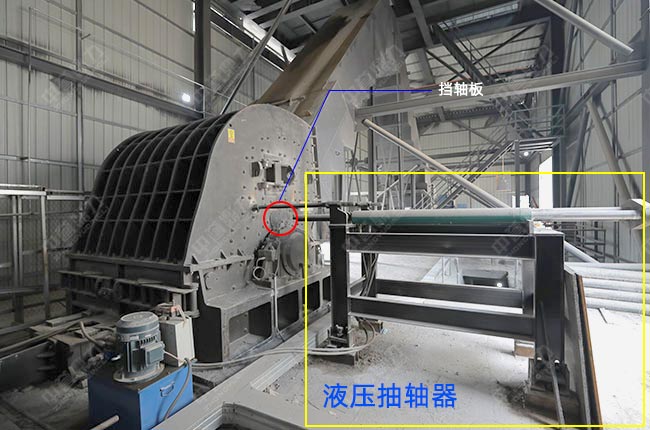 機(jī)體設(shè)有觀察門,大型設(shè)備機(jī)殼側(cè)板上留有抽軸孔,更換錘頭和錘軸只需卸掉外側(cè)的擋軸板,通過液壓抽錘軸裝置就可方便、快捷的更換,省時(shí)省力。