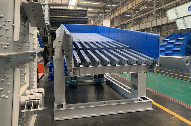 一小時200噸小型震動給料機(jī)型號為DLZGC0938,該機(jī)型料槽寬900mm,長3800mm,每小時處理量150-200噸,安裝傾角為11°,有漏土型、不漏土型、兩用型等類型可選,漏土型和兩用型可以對原料進(jìn)行初始篩分,將雜質(zhì)和不需要破碎的物料提前篩分,有利于提高生產(chǎn)效率和成品料潔凈度。