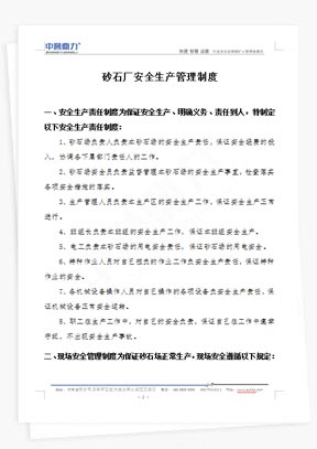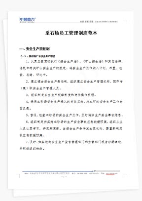 提供礦山運(yùn)營管理制度、砂石廠生產(chǎn)管理規(guī)章、采石場安全生產(chǎn)標(biāo)準(zhǔn)化文件下載,涵蓋崗位職責(zé)說明書、設(shè)備操作規(guī)范、應(yīng)急預(yù)案模板等全流程文檔,助力企業(yè)合規(guī)高效運(yùn)營。