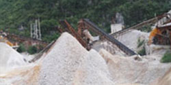 大塊的原料經(jīng)由原料倉(cāng)進(jìn)入振動(dòng)給料機(jī),使物料以均勻的速度到達(dá)破碎腔內(nèi)部進(jìn)行破碎,破碎后的物料經(jīng)過(guò)圓振動(dòng)篩進(jìn)行篩分,滿足粒度的物料被輸送至成品料堆,不滿足粒度的物料經(jīng)皮帶輸送機(jī)運(yùn)輸?shù)蕉?jí)破碎機(jī)進(jìn)行再次破碎,達(dá)到規(guī)格粒度物料被運(yùn)往成品料堆。