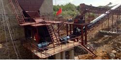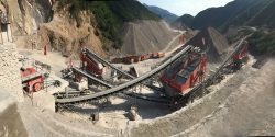 如圖所示,該碎石生產(chǎn)線總體上來說分為兩部分,一部分出普通成品料,一部分出砂石料,由PCZ1820錘式破碎機直接破碎以后篩分出來的料就是普通成品料,不滿足成品料粒度要求的物料被輸送到PC1220整形機中進(jìn)行進(jìn)一步加工以后篩分出來的成品料是砂石料,能滿足用戶的不同需求。