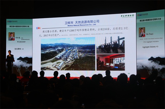 中砂石協(xié)會(huì)會(huì)長(zhǎng)胡幼奕在大會(huì)演講中推介中譽(yù)鼎力環(huán)保智能生產(chǎn)線