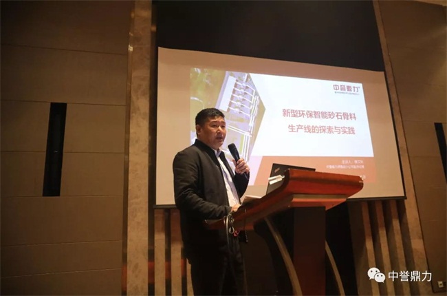 中譽(yù)鼎力作為砂石行業(yè)內(nèi)提倡環(huán)保、集約、智能化生產(chǎn)發(fā)展的企業(yè),在積推動各地礦山資源整合,提倡規(guī)范環(huán)保制砂。會議現(xiàn)場,中譽(yù)鼎力裝備設(shè)計公司副總經(jīng)理兼大客戶項目部總經(jīng)理原文秋做了“環(huán)保智能砂石骨料生產(chǎn)線的探索與實踐”的主旨演講。