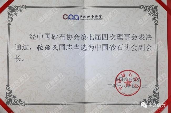 中譽(yù)鼎力智能裝備有限公司董事長(zhǎng)張治民當(dāng)選中砂石協(xié)會(huì)副會(huì)長(zhǎng)!