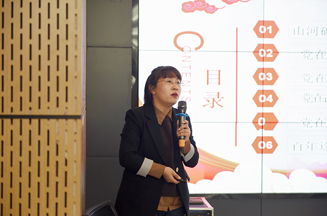 王霞副校長結(jié)合當(dāng)下時政要點和我近現(xiàn)代史實,圍繞“中共百年歷程與經(jīng)驗啟示”的主題,通過課件、視頻展示,帶大家回顧了中共產(chǎn)黨的成立背景、發(fā)展歷程,并講解共產(chǎn)黨百年歷史取得的經(jīng)驗和啟示。