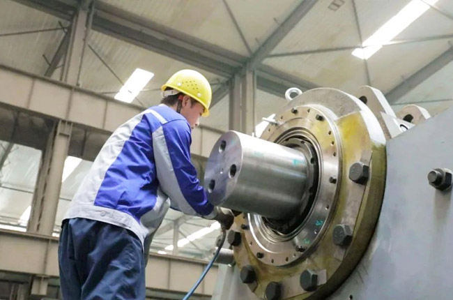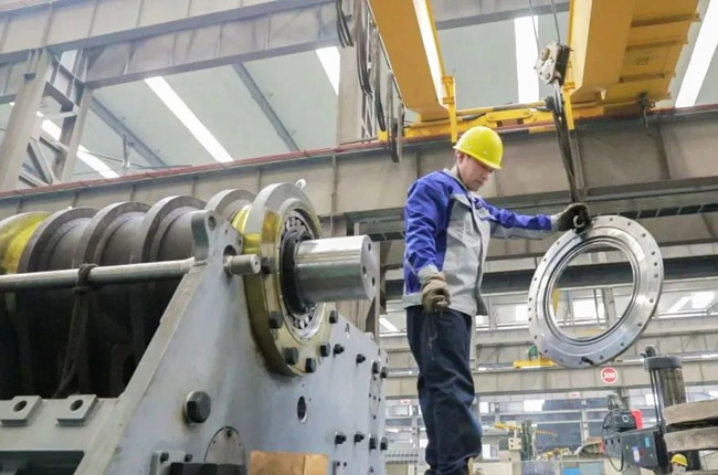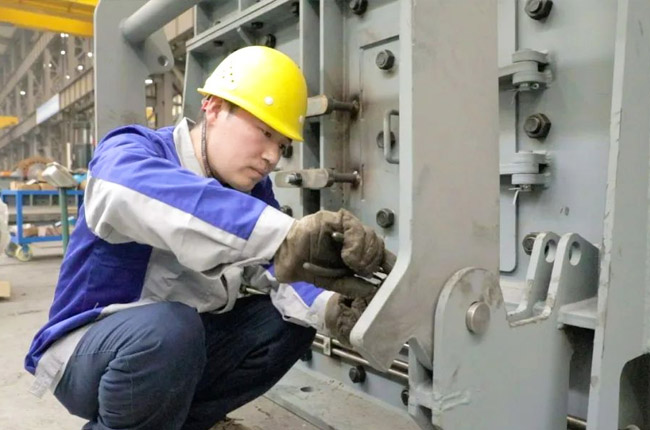 采訪第一事業(yè)部成裝組裝配員工馮浩然的時候,他正在裝配一臺即將發(fā)貨的DLEV125顎式破碎機(jī),從液壓充氣到壓蓋組裝,安裝30個螺絲,只需短短2-3分鐘的時間。用尺子測量軸承間距,進(jìn)行反復(fù)對比,裝配完成后,對零件的相互位置、配合間隙、松緊情況等進(jìn)行調(diào)整,然后再進(jìn)行面的精度檢驗,后進(jìn)行試運行,面檢查機(jī)器運轉(zhuǎn)的靈活性、密封性、轉(zhuǎn)速、功率等各項功能。