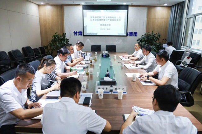 7月5日,河南中譽(yù)鼎力智能裝備有限公司董事長(zhǎng)張治民赴甘肅蘭州,與甘肅建投綠色建材產(chǎn)業(yè)發(fā)展集團(tuán)黨委書(shū)記、董事長(zhǎng)秦超寧,就企業(yè)優(yōu)勢(shì)互補(bǔ)、深化合作交流等話題進(jìn)行座談。
