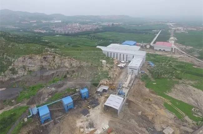 上圖為河北白沙時產(chǎn)3000噸骨料生產(chǎn)線遠觀圖,破碎車間、篩分車間、成品料庫車間部采用封閉生產(chǎn)的方式,并配備有完備的除塵設備,在占地上部利用山勢,不占用耕地面積。