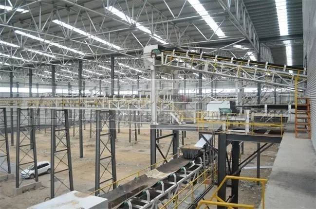 石料破碎后由皮帶輸送機輸送到封閉生產(chǎn)車間內(nèi)進行二次破碎加工生產(chǎn)。
