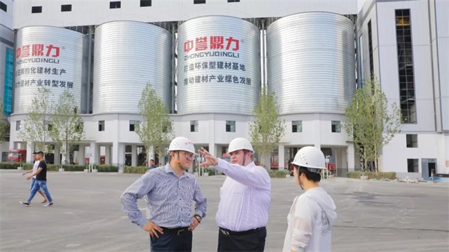 隨后,考察團一行來到了中譽鼎力智能裝備新廠區(qū)。馮總為考察團成員詳細介紹了中譽鼎力五位一體循環(huán)建材產業(yè)園沙盤。該項目體現了產業(yè)集聚和循環(huán)鏈接效應,在提高礦石資源綜合利用率和產品附加值、控制原材料運輸成本等方面具有突出優(yōu)勢。