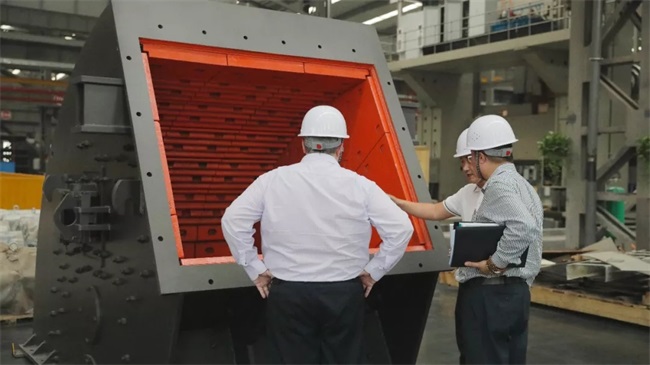 考察團先來到中譽鼎力承建的衛(wèi)輝市資源有限公司時產3000噸砂石骨料生產線參觀,了解該項目在規(guī);h(huán);⒅悄芑母呱笆橇仙a方面的經驗。亞太總監(jiān) Glen先生多次表示impressive(驚嘆),據他介紹,在澳大利亞當地,時產300-500噸算是規(guī)模大的,也沒有封閉生產的概念。