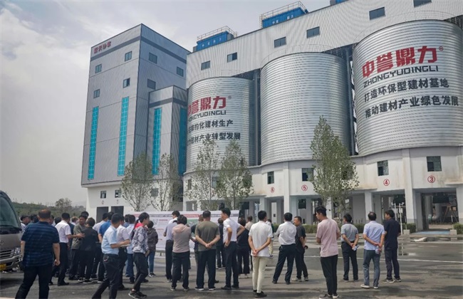 衛(wèi)輝市導考察藍天環(huán)保材料公司干混砂漿、機制砂等一體化建材項目