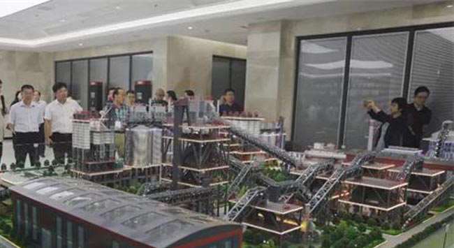 考察團(tuán)一行參觀中譽鼎力五位一體循環(huán)建材產(chǎn)業(yè)園項目沙盤