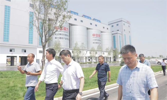 隨后,考察團(tuán)來(lái)到中譽(yù)鼎力智能裝備新廠區(qū),參觀了中譽(yù)鼎力五位一體循環(huán)建材產(chǎn)業(yè)園項(xiàng)目沙盤(pán),并在接待室進(jìn)行座談。