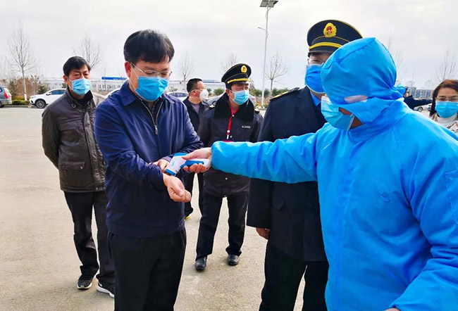 摘要:3月4日下午,新鄉(xiāng)市疫情防控指揮部導(dǎo)在衛(wèi)輝市委常委、市副市長楊鈞的陪同下蒞臨中譽鼎力指導(dǎo)疫情防控工作。河南中譽鼎力智能裝備有限公司副總經(jīng)理崔玉清、總經(jīng)辦主任吳澤朋程接待。