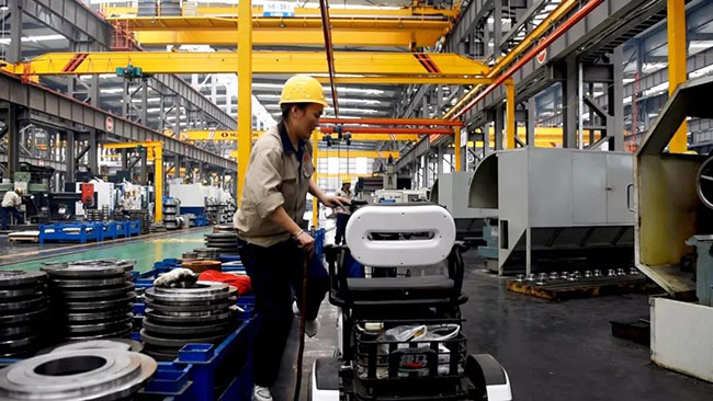 7月22日上午10點(diǎn),中譽(yù)鼎力智能裝備生產(chǎn)車間機(jī)加工區(qū)新到了一批外協(xié)件,張衛(wèi)霞坐在電動三輪車上依次仔細(xì)地檢查著每一個零部件:觀察、測量、記錄、填單……嚴(yán)謹(jǐn)?shù)馁|(zhì)檢流程沒有因?yàn)槟_受傷而有所耽誤。