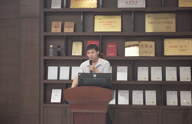 發(fā)布會(huì)上,河南中譽(yù)鼎力智能裝備有限公司技術(shù)部長(zhǎng)劉海淘先后為大家介紹了DLPCZ、DLPC系列錘式破碎機(jī)、DL2YKZ3070振動(dòng)篩密封鋼構(gòu)、給料+破碎整體鋼構(gòu)、移動(dòng)式破碎站、干法制砂樓、選粉機(jī)等公司新上市設(shè)備,對(duì)設(shè)備的特點(diǎn)、分類、組成及安裝維護(hù)等內(nèi)容進(jìn)行了詳細(xì)的講解與說(shuō)明,讓各地服務(wù)銷售代表對(duì)公司新上市設(shè)備及其優(yōu)勢(shì)有了更深層次的了解和認(rèn)識(shí),便于今后營(yíng)銷服務(wù)工作的開展。