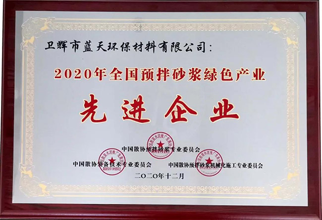 年度表彰環(huán)節(jié),衛(wèi)輝市藍(lán)天環(huán)保材料有限公司作為新鄉(xiāng)市5家成功入選企業(yè)之一,喜獲“2020年預(yù)拌砂漿綠色產(chǎn)業(yè)企業(yè)”榮譽表彰!