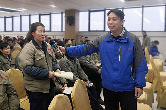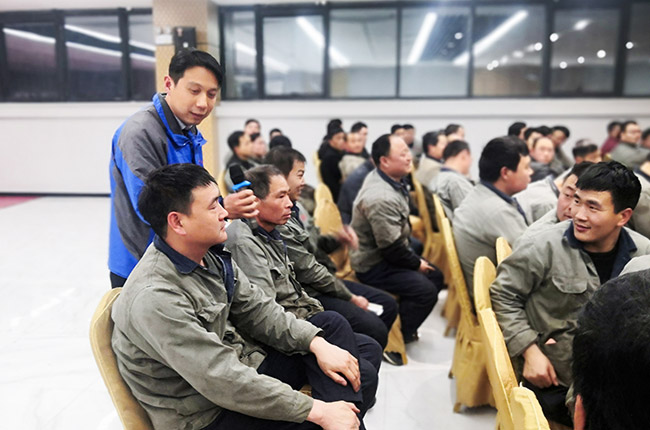 中譽鼎力智能裝備有限公司質(zhì)檢中心部長潘新磊、設(shè)備保障部部長王衛(wèi)生就機械識圖操作、安生產(chǎn)管理等主題對生產(chǎn)中心、質(zhì)檢中心、設(shè)備保障部等部門所有工人進行了詳盡而生動的安生產(chǎn)知識培訓(xùn)。