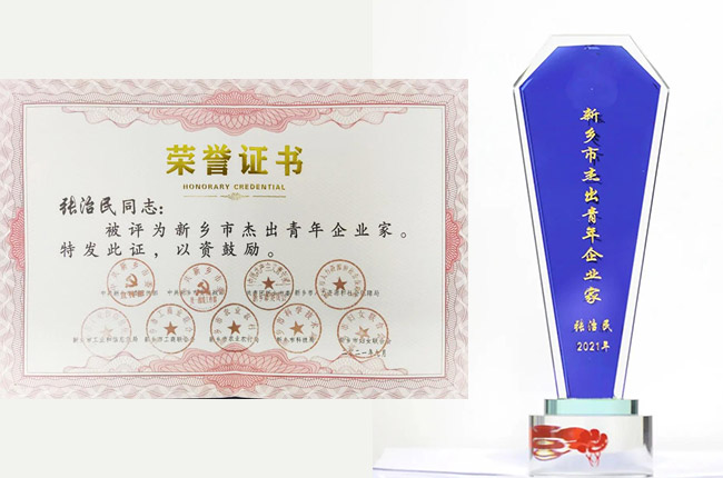表彰會上,河南中譽鼎力智能裝備有限公司董事長張治民被授予“新鄉(xiāng)市杰出青年企業(yè)家”榮譽稱號!
