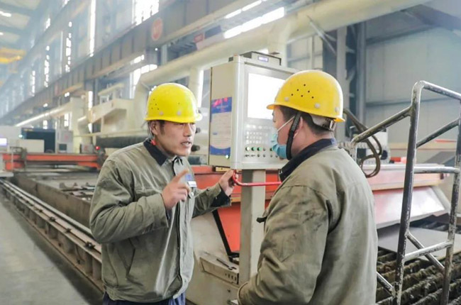 從起初的半自動(dòng)跑車、手動(dòng)下料,到火焰數(shù)控切割,再到如今的等離子和激光數(shù)控切割……他參與并見證了下料工藝的每一次革新,也成為了下料車間的班組長。“不管干焊接、還是下料,我都堅(jiān)信一點(diǎn):要么不干,要干就努力干好!”