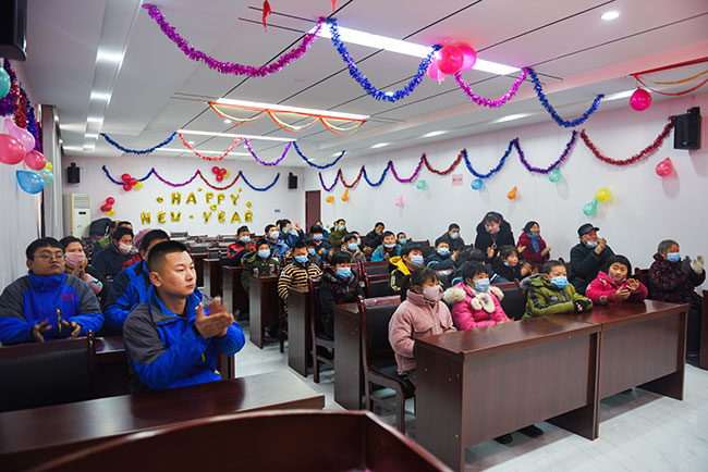 河南中譽(yù)鼎力智能裝備有限公司常務(wù)副總張志宇為學(xué)生分發(fā)棉衣