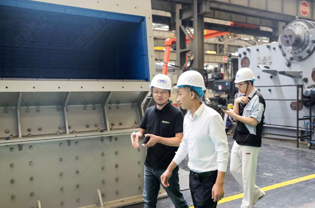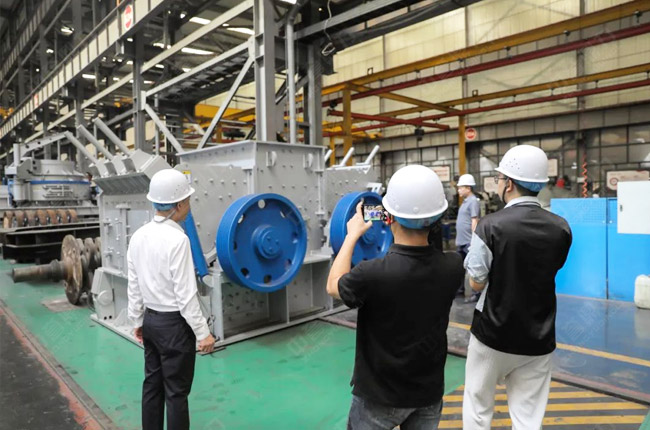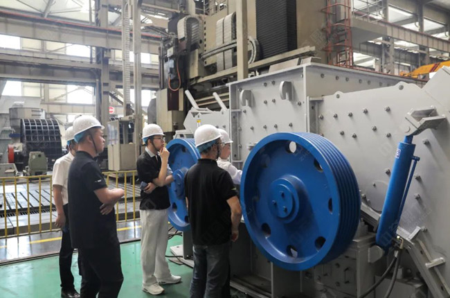 在觀摩過(guò)程中,參觀團(tuán)查看了中譽(yù)鼎力破碎機(jī)、制砂機(jī)產(chǎn)品,并了解了產(chǎn)品的特點(diǎn)、原理和性能優(yōu)勢(shì)。