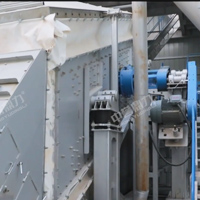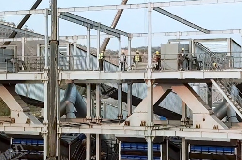 整個組裝式篩分結構由振動篩主機、振動篩框架、樓體鋼構、振動篩附件、電動提升機構、巡檢廊道等部分組成,振動篩由振動篩框架支撐,振動篩附件由樓體鋼構支撐,樓體鋼構和振動篩附件不參與振動,使樓體鋼構的強度和穩(wěn)定性更高。