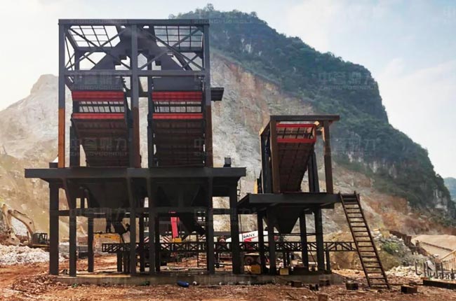 在此背景下,天等縣廣西榮達路橋有限公司龍文采石廠與中譽鼎力合作,新建一條年產(chǎn)250萬噸環(huán)保智能砂石骨料生產(chǎn)線。目前,該項目土建施工正在火熱開展,主設備已進場安裝。