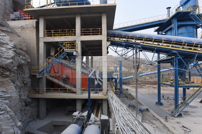 2、利用原來(lái)的廢舊機(jī)口進(jìn)行改造,破碎機(jī)出料通過(guò)溜槽直接進(jìn)入到振動(dòng)篩設(shè)備內(nèi),減少了一臺(tái)皮帶輸送機(jī)的成本,整體設(shè)計(jì)還是比較合理的,是新鄉(xiāng)鼎力近些年承建的大型項(xiàng)目之一