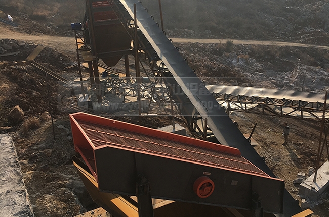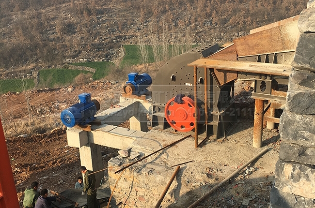 從這個時產300噸的石灰石碎石生產線配置方案的圖集中,我們可以看到PCZ1512重錘破碎機的進料口,這款粗破設備破碎比大,可以容納粒徑1米以上的石頭。大塊石頭可以一破成型,無需多次破碎,就得到終的成品料,簡化了生產流程。
