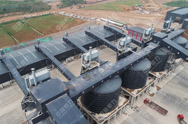 4、圓形儲料倉對面設有成品料緩沖庫,通過輸送機送至各自成品料平庫內(nèi),可實現(xiàn)淡季存料、旺季銷售,節(jié)省轉運費用,避免用料高峰期無料可尋。