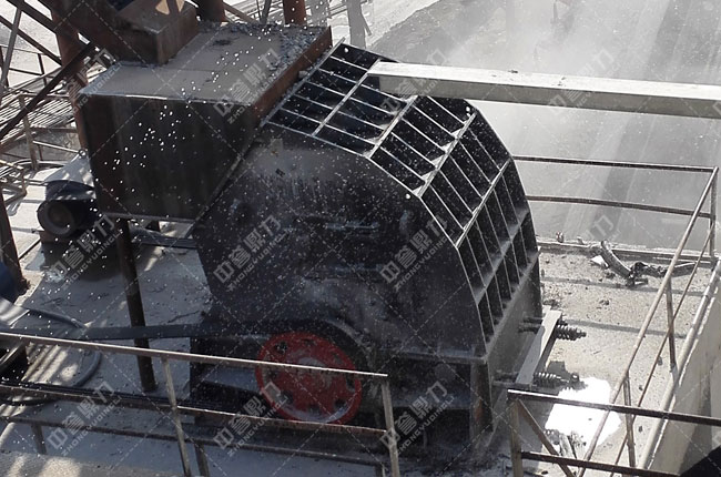 粗碎——原料經(jīng)振動給料機(jī)均勻的送到重型錘式反擊破碎機(jī)PCZ1615進(jìn)行加工破碎