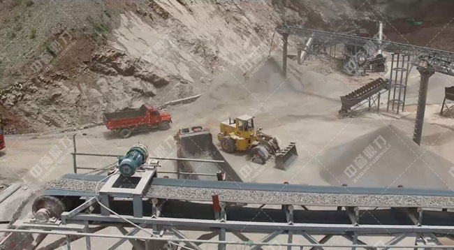 利用地形落差,破碎篩分后的成品料經(jīng)過管道直接落到成品料堆,節(jié)省輸送帶方面的投資;