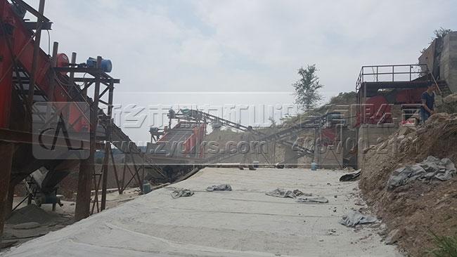 從生產(chǎn)現(xiàn)場我們可以看到,此條日產(chǎn)1500噸砂石料生產(chǎn)線部都是選用我們公司的設備,原料和成品料之間部都是用皮帶輸送機傳輸?shù)模a(chǎn)流程是流暢,可以自動化的將成品料生產(chǎn)出來,減少了使用額外附加設備的幾率。