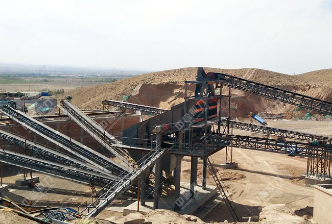 2、喂料機+顎式破碎機+圓錐式破碎機+制砂設(shè)備+礦山振動篩+防塵機械
