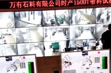 萬有石料時(shí)產(chǎn)1500噸生產(chǎn)線帶料試機(jī)控制室現(xiàn)場(chǎng)