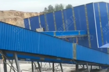 該項目環(huán)保措施做得很好,輸送帶采用封閉處理,輸送物料過程中沒粉塵潰散,還有四個大料倉用來儲存成品料。