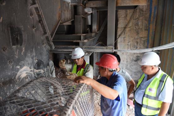 現(xiàn)場,鼎力安裝工程師、銷售經(jīng)理、售后服務(wù)經(jīng)理了解到該生產(chǎn)線的產(chǎn)量沒有達到設(shè)備時產(chǎn)量時,立即開始檢測設(shè)備、查找原因。經(jīng)過查看用戶的破碎原材料,發(fā)現(xiàn)原材料里含有硅巖,加劇了破碎機錘頭磨損程度,進而影響產(chǎn)量。建議在破碎前將硅巖層剝離掉,避免錘頭磨損嚴重的情況再次出現(xiàn)。