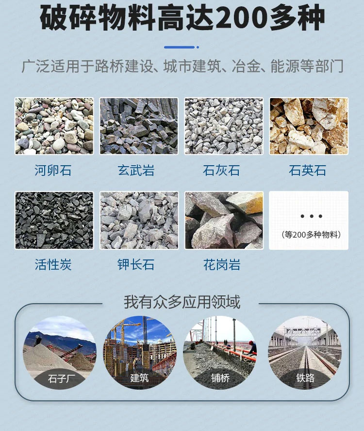 | 適應(yīng)物料: | 河卵石、花崗巖、玄武巖、鐵礦石、石灰石、石英石、輝綠巖、鐵礦、金礦、銅礦等物料 |
