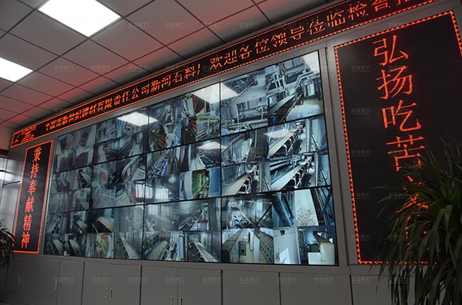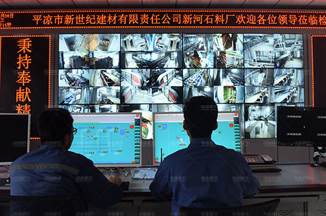 石料廠總控制室,從監(jiān)控可清楚的看到生產(chǎn)線各設(shè)備的運(yùn)行情況