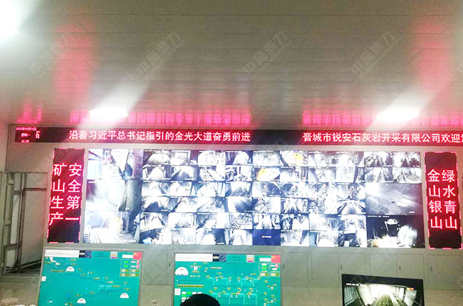 礦山生產(chǎn)管理系統(tǒng)監(jiān)控大屏,可在中控室實時觀察設備運行情況。