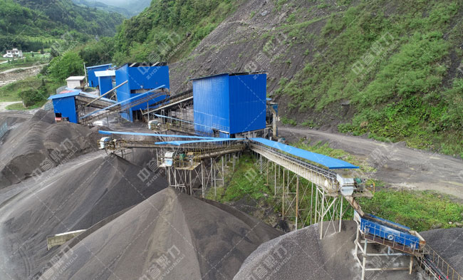 搭配:原料堆、SC160圓錐式破石機(移動式)、HVI1250制砂機、2YK2460篩分機械、3020砂石洗選設備(2臺),依據場地顆粒配備運送機若干。
